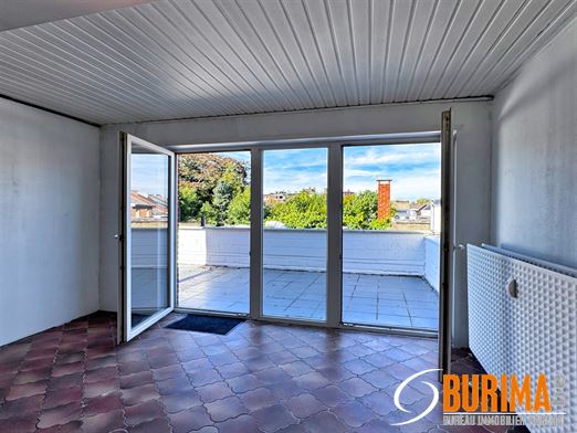 MARCINELLE Au sein d’une petite résidence de trois unités, cet appartement traversant comporte deux chambres, un hall de nuit, une salle de douches avec coin buanderie, un living avec cuisine équipée, terrasse Sud-Ouest.
